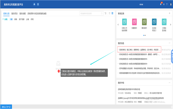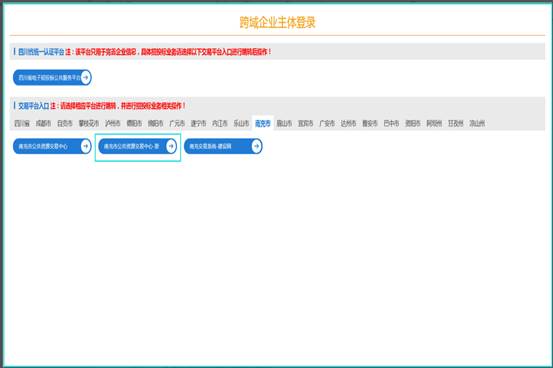 登錄完成后進入首頁,選擇(南充市公共資源交易中心-新)進入系統(tǒng),如下圖: