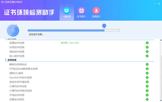 如果“證書檢測結(jié)果”中顯示證書狀態(tài)正常,則表示您的證書Key是可以正常使用的,如下圖:
