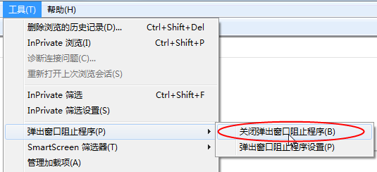 上述操作完成后,如果系統(tǒng)中某些功能仍不能使用,請將攔截工具關(guān)閉再試用。比如在windows工具欄中關(guān)閉彈出窗口阻止程序的操作: