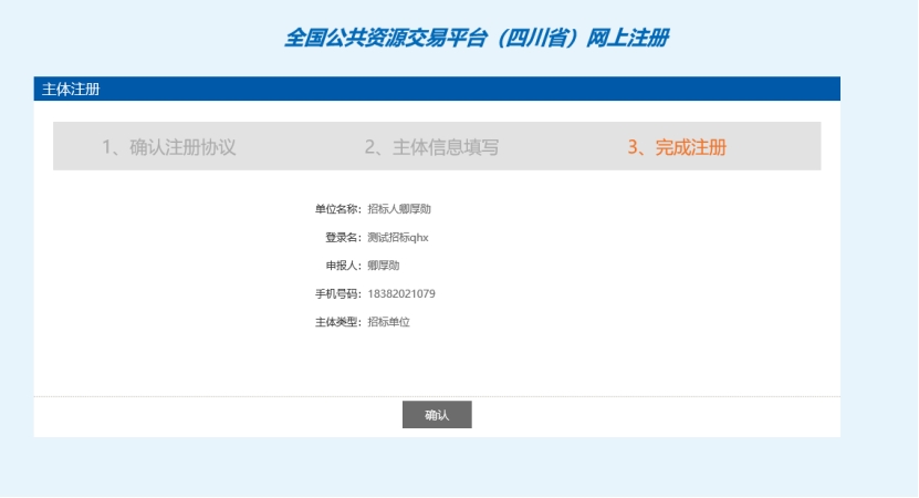 輸入登錄名、密碼等基本信息,如果該登錄名已被注冊(cè)過(guò),必須更換登錄名。如果單位已經(jīng)注冊(cè)過(guò),則不需要重復(fù)注冊(cè)。選擇“主體類型”及“單位角色”(角色可以根據(jù)自己?jiǎn)挝磺闆r多項(xiàng)選擇),輸入驗(yàn)證碼之后,點(diǎn)擊“確認(rèn)”按鈕。