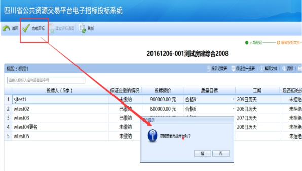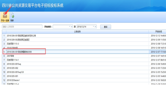選擇要開標(biāo)的項(xiàng)目,點(diǎn)擊“開標(biāo)一覽表”: