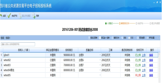 注:如遇特殊情況,需要投標(biāo)人現(xiàn)場遞交投標(biāo)文件,請?jiān)陂_標(biāo)一欄表中選擇該投標(biāo)人,然后上傳文件。