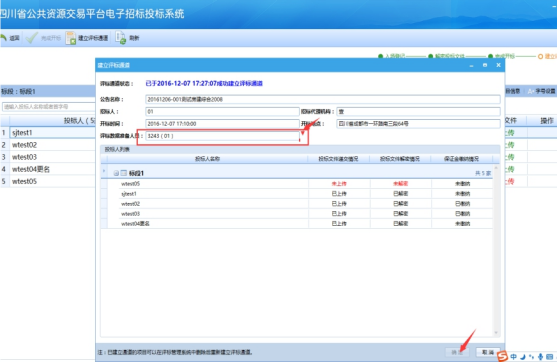 建立評標(biāo)通道時(shí),選擇評審數(shù)據(jù)準(zhǔn)備人員: