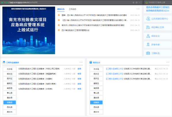 2023420日,按照《儀隴縣搶險救災(zāi)工程項目及工程隊伍儲備庫管理辦法》的相關(guān)規(guī)定,在儀隴縣應(yīng)急管理局、公共資源交易中心的組織見證和行業(yè)主管部門自規(guī)局的現(xiàn)場監(jiān)督下,儀隴縣公共資源交易中心采取隨機(jī)抽取方式從南充市搶險救災(zāi)應(yīng)急響應(yīng)管理系統(tǒng)工程隊伍儲備庫中抽取出了儀隴縣地質(zhì)災(zāi)害應(yīng)急處置項目的施工、設(shè)計和監(jiān)理單位。抽取完成后系統(tǒng)自動通過南充市搶險救災(zāi)應(yīng)急響應(yīng)管理系統(tǒng)和南充市公共資源交易中心網(wǎng)站進(jìn)行了結(jié)果公示。