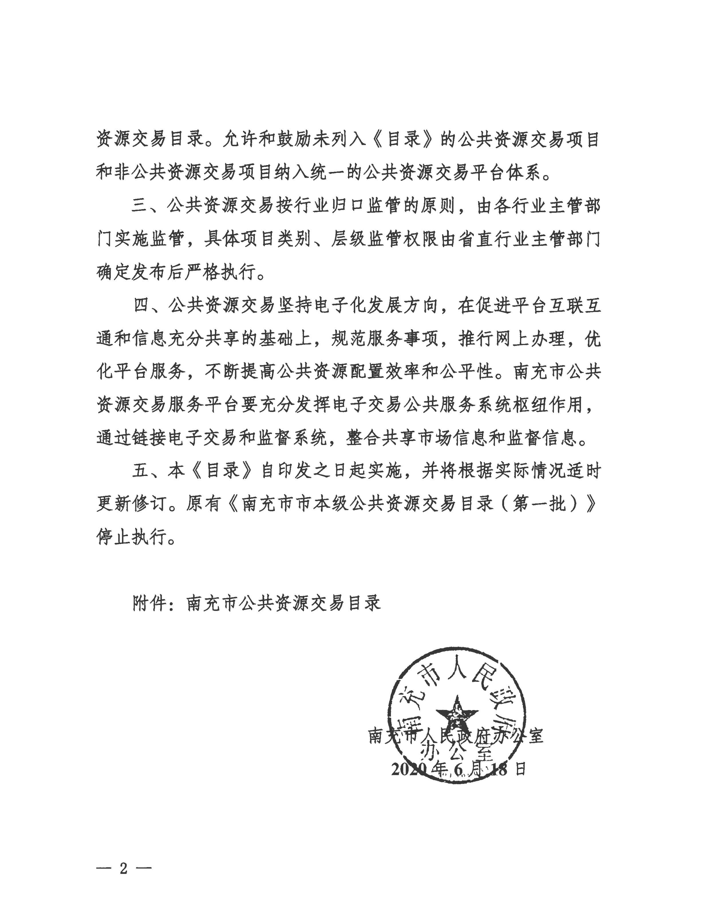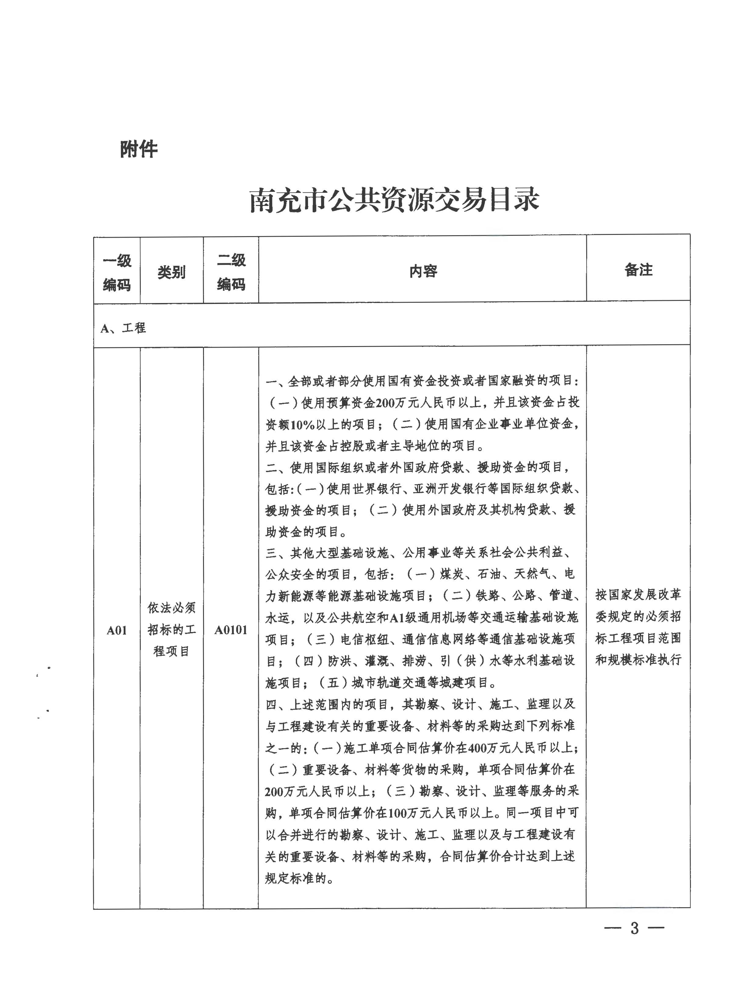 南充市人民政府辦公室關(guān)于印發(fā)《南充市公共資源交易目錄》的通知